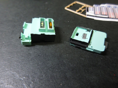 客室ドアからやけに目立つ灰緑色のライトケースはつや消し黒で塗っておきました。